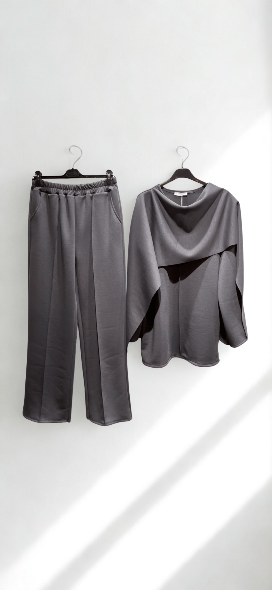 Gefertigt aus einem weichen, elastischen Material, bietet das Set Bewegungsfreiheit und einen edlen Fall – ideal für elegante Alltagsmomente, Reisen oder stilvolle Freizeitlooks.
