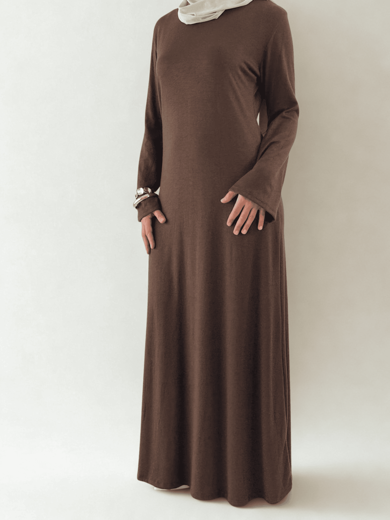 Er kann locker über die Schultern getragen, elegant drapiert oder komplett entfernt werden – so lässt sich der Look im Handumdrehen verändern. Ob klassisch, modern oder Modest – dieses Kleid passt sich deinem Stil perfekt an.