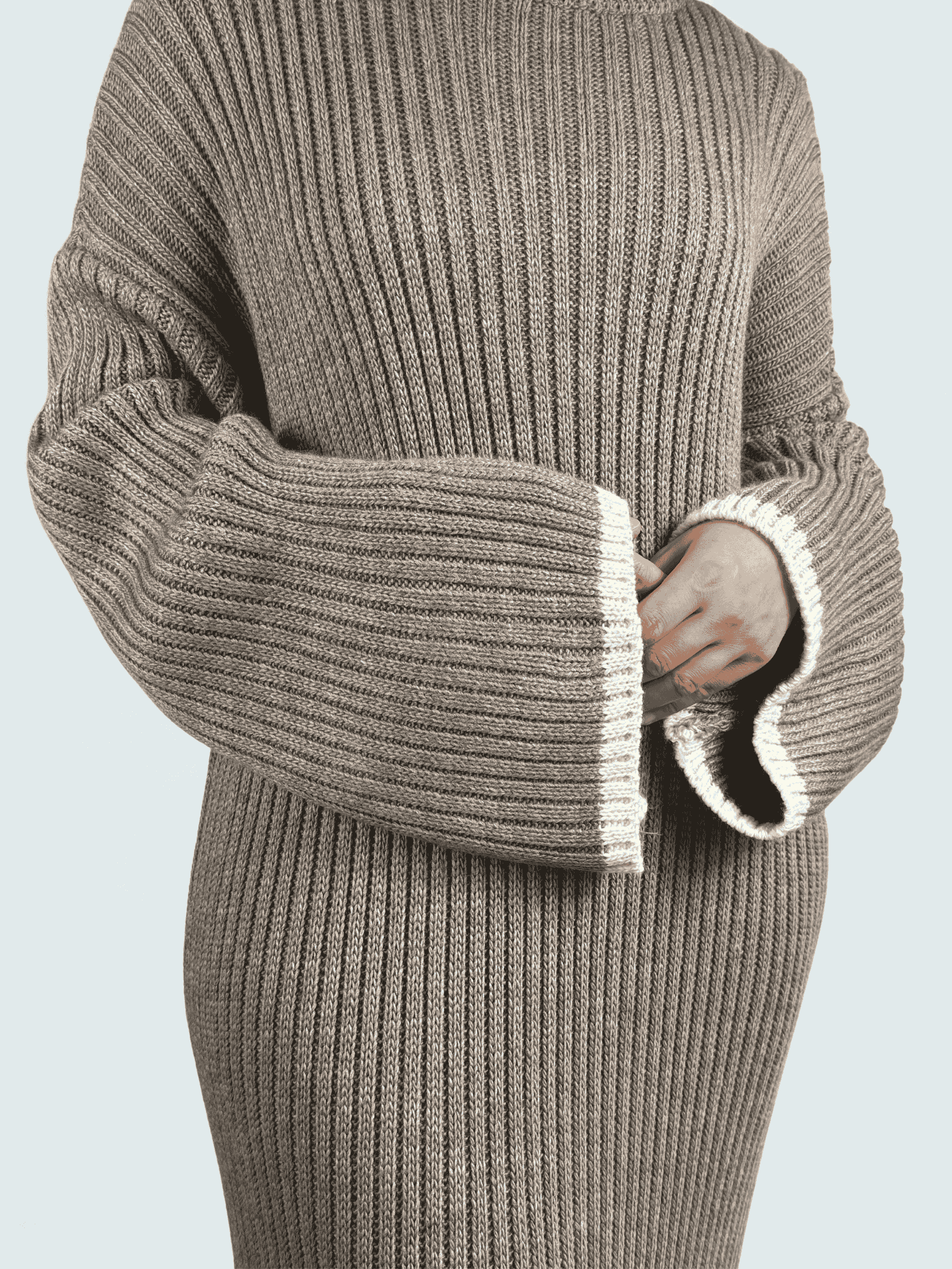 Dieses hochwertige Rippen-Strickkleid verbindet zeitloses Design mit maximalem Komfort. Der weiche, strukturierte Strick sorgt für eine elegante Silhouette, während der gerade, lang fallende Schnitt für ein natürliches, fließendes Erscheinungsbild sorgt.